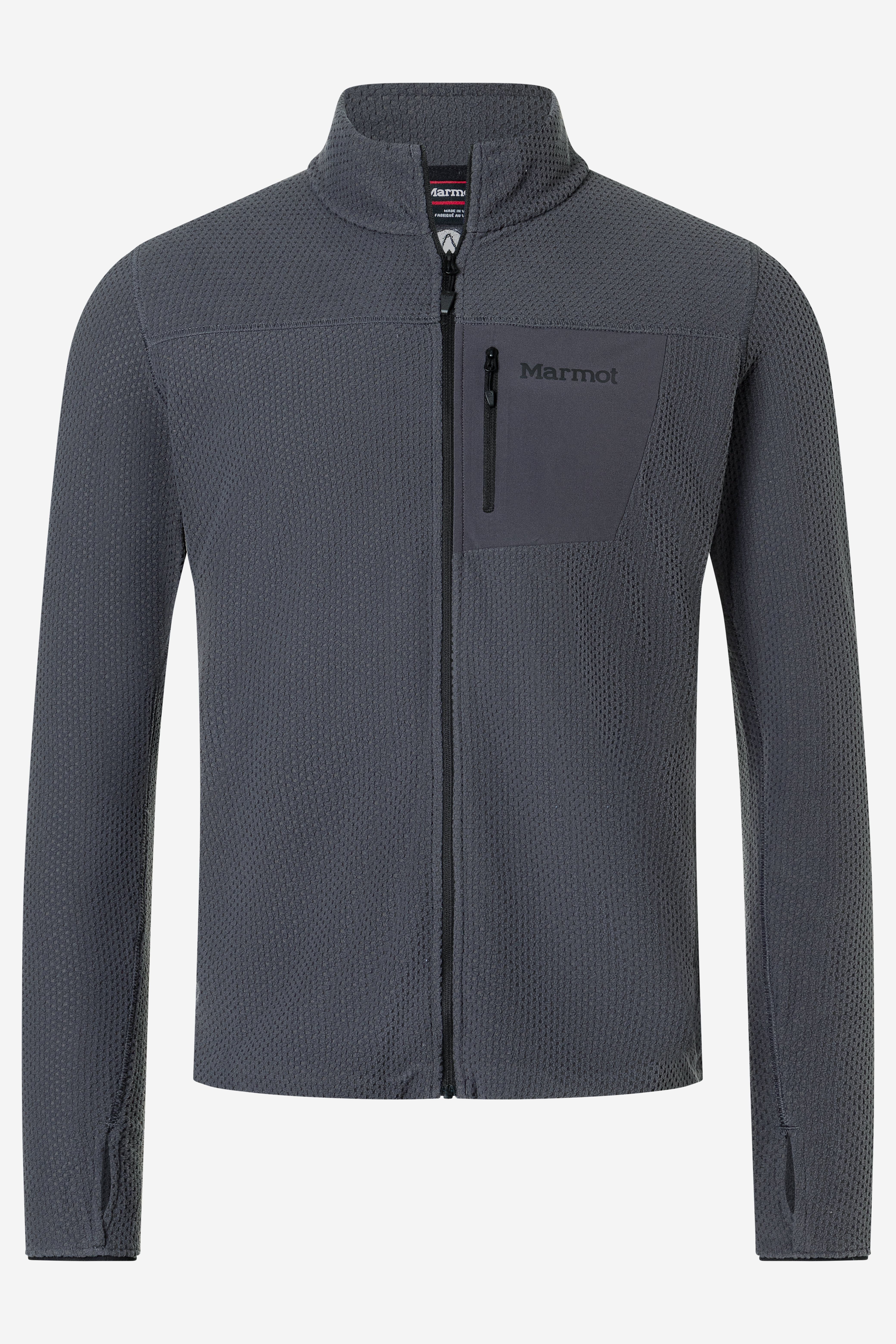 Marmot AirFleece Jacket е мъжко леко флийс яке с цял цип, създадено за туризъм, layering и активна употреба на открито. Изработено е от 100% рециклиран полиестерен жакардов полар с характерна checkerboard grid структура, която подобрява дишаемостта, задържа топлината и намалява обема, а slim fit кройката го прави отличен междинен слой под shell яке или раница.